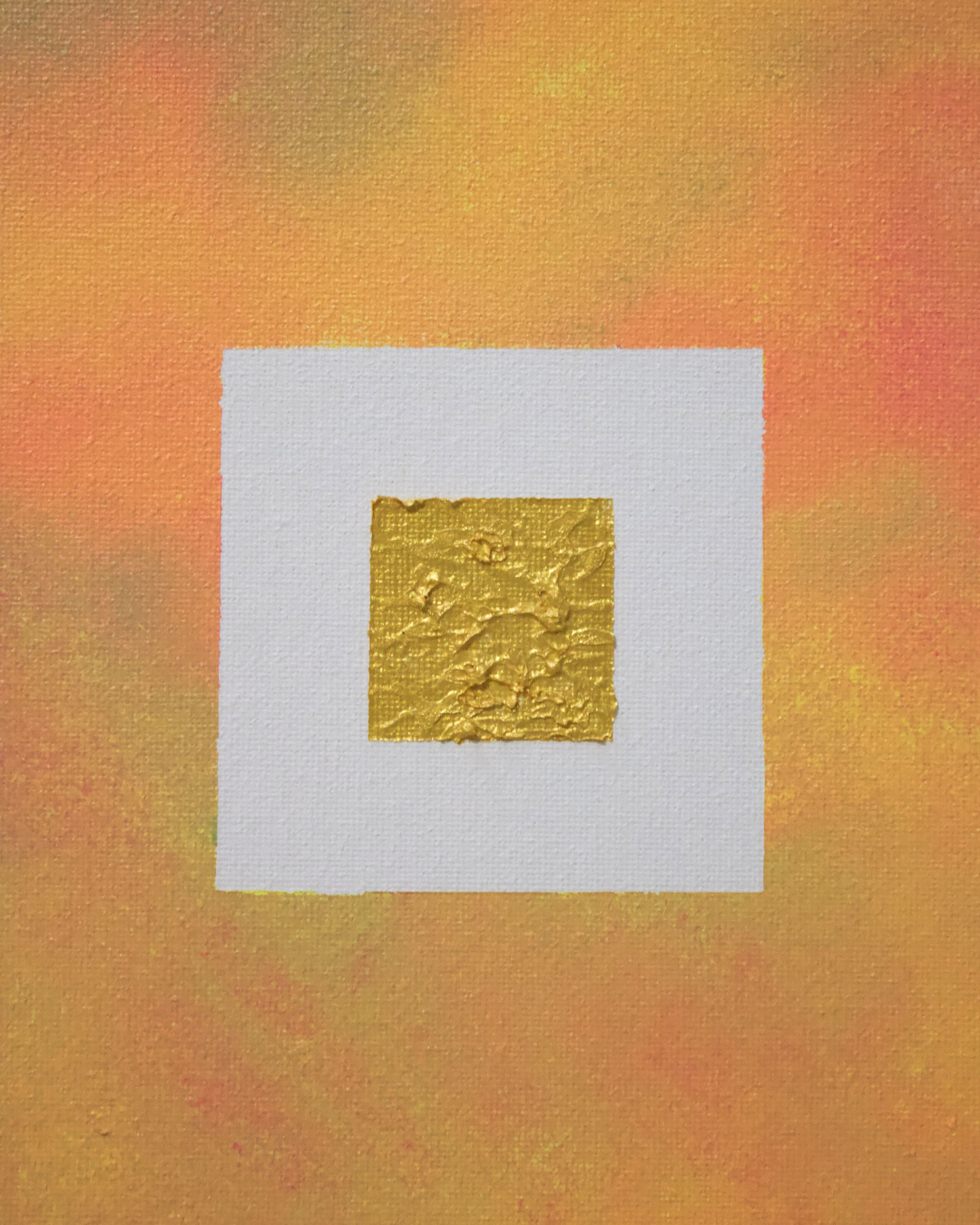 Eos —named after the Greek goddess of the dawn—captures the layers and intensity of a summer sunrise. Pink, yellow, orange, and green subtly blend into a warm glow, like the sky slowly changing as the sun rises above the horizon. A golden square radiates from the center: a powerful symbol of energy, hope, and new beginnings.