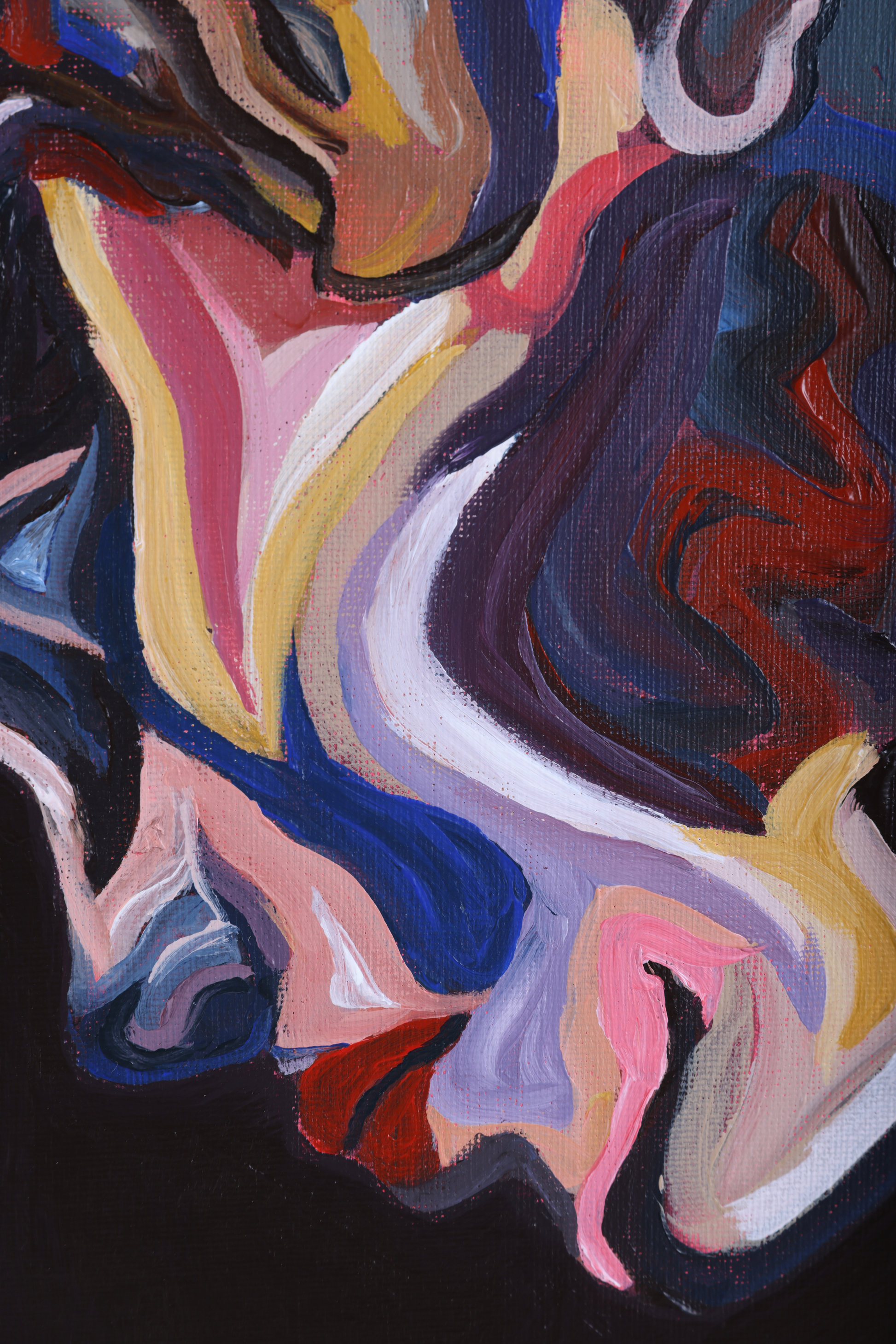 - Expressieve penseelstreken en gelaagde compositie